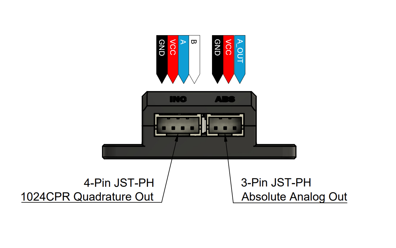 <figure><img src="https://1580331926-files.gitbook.io/~/files/v0/b/gitbook-x-prod.appspot.com/o/spaces%2FnHZmDkFp5cOUYczo9V98%2Fuploads%2F5n37A6dkb10egNK6CbSK%2FEncoder%20pinout.png?alt=media&#x26;token=28c0ec81-d094-4559-864c-2567eda3c5e3" alt="" width="375"><figcaption></figcaption></figure>